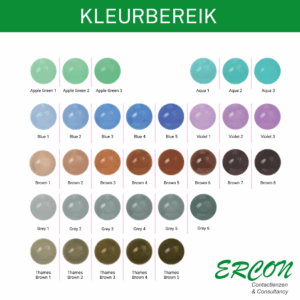 • Kleuren: Brown, Green Brown, Grey, Blue, Blue Grey, Aqua, Green